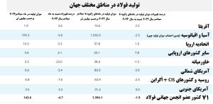 این سند که بر اساس اطلاعات گزارش شده ۷۱ کشور تولیدکننده فولاد به این انجمن گردآوری شده است، نشان می‌دهد که برغم افزایش تولید ۹ ماهه منتهی به پایان سپتامبر امسال نسبت به دوره مشابه سال قبل در سه کشور هند، آلمان، ترکیه و برزیل و میزان تولید در این مدت در مورد بقیه فولادسازان عمده جهانی از جمله ایران منفی بوده است.